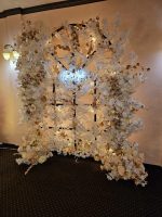 Decor "SEMILUNA", decorated with artificial flowers and LED strip on the side. Predominant colors lilac, pink-purple, fuchsia and white. The product is for rent, it can be decorated in other colors. The rental can be made at the client's home or at the events salon (information by phone), depending on the available date.
