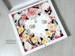 Cutie pentru verighete personalizata si decorata cu flori criogenate