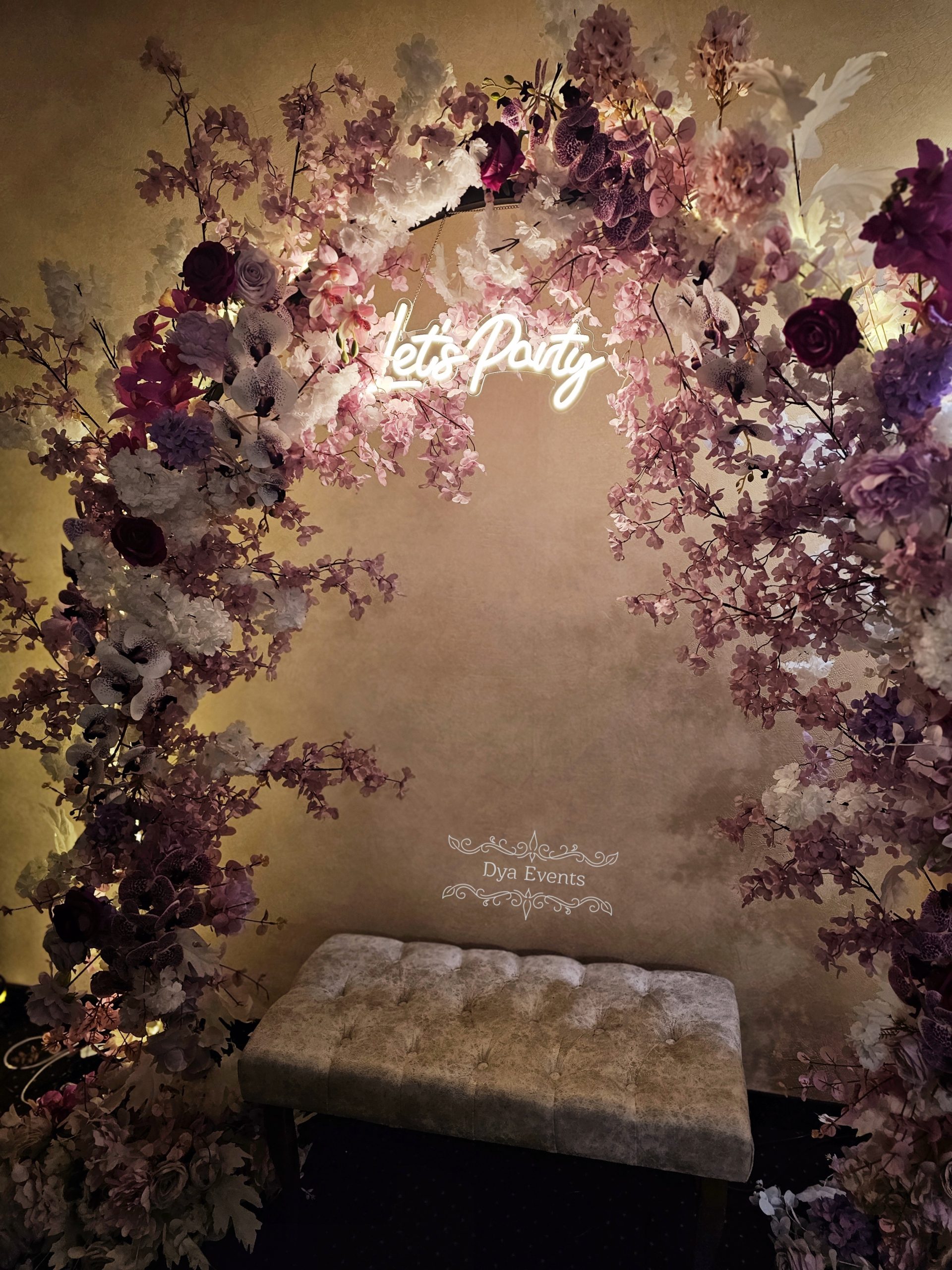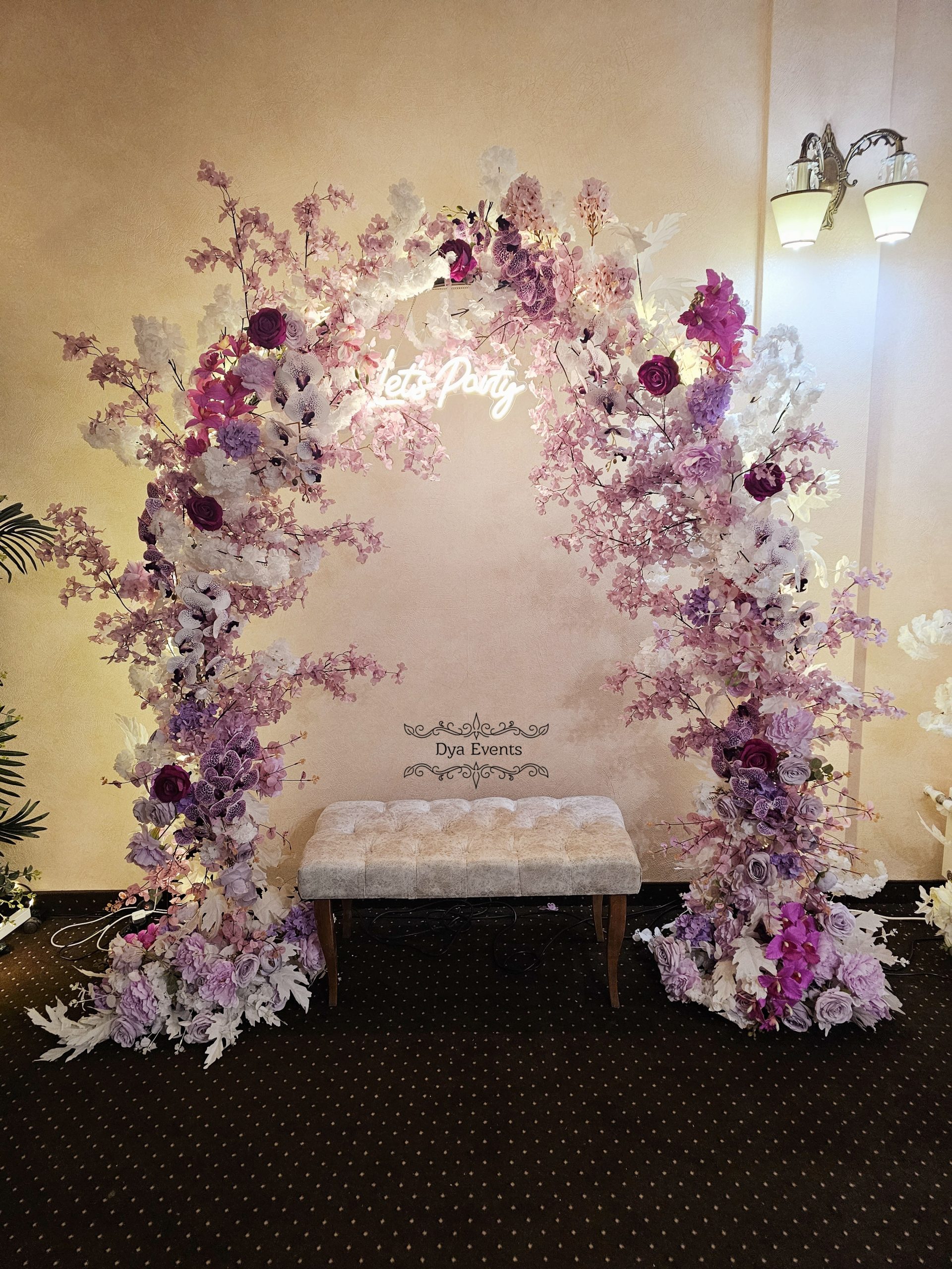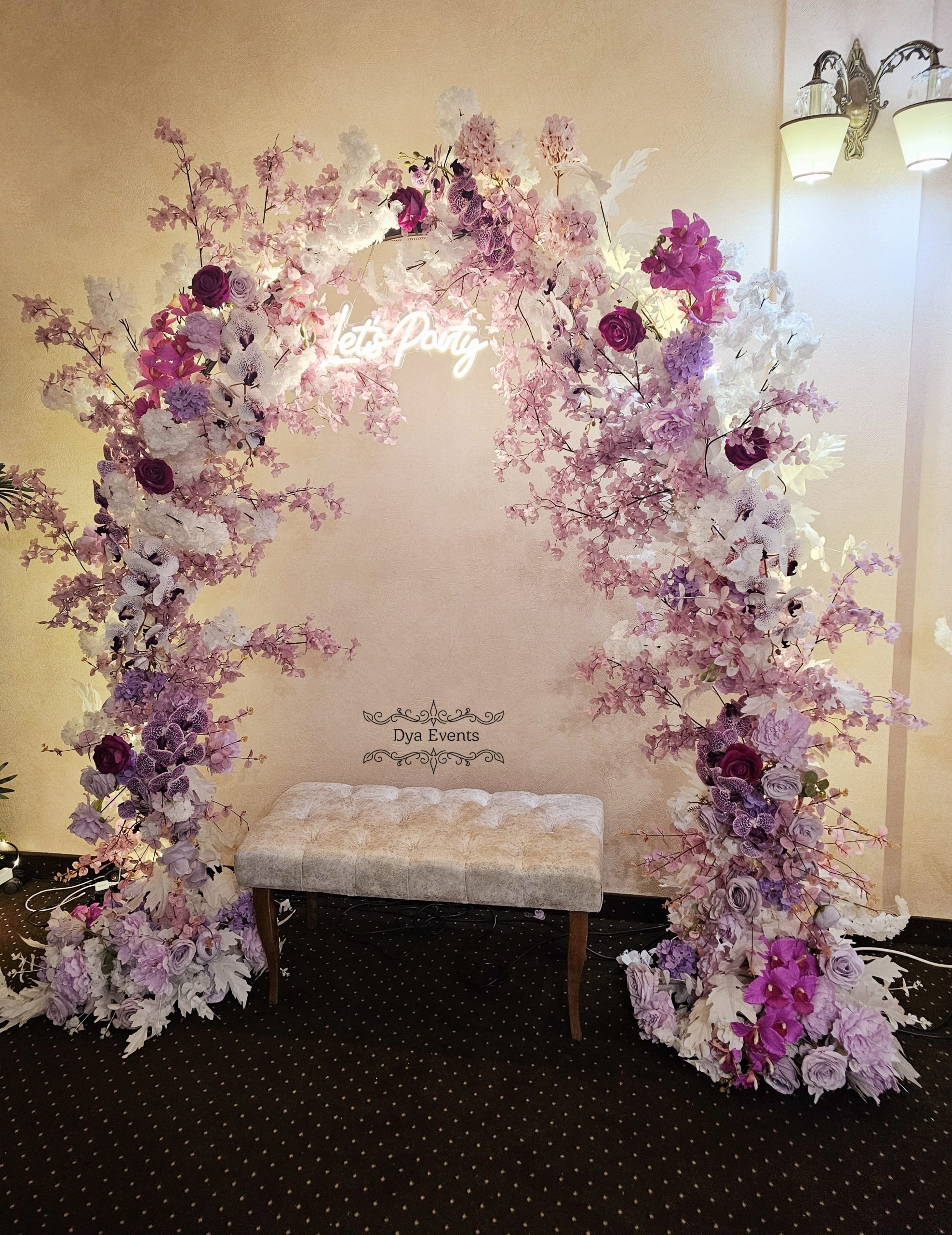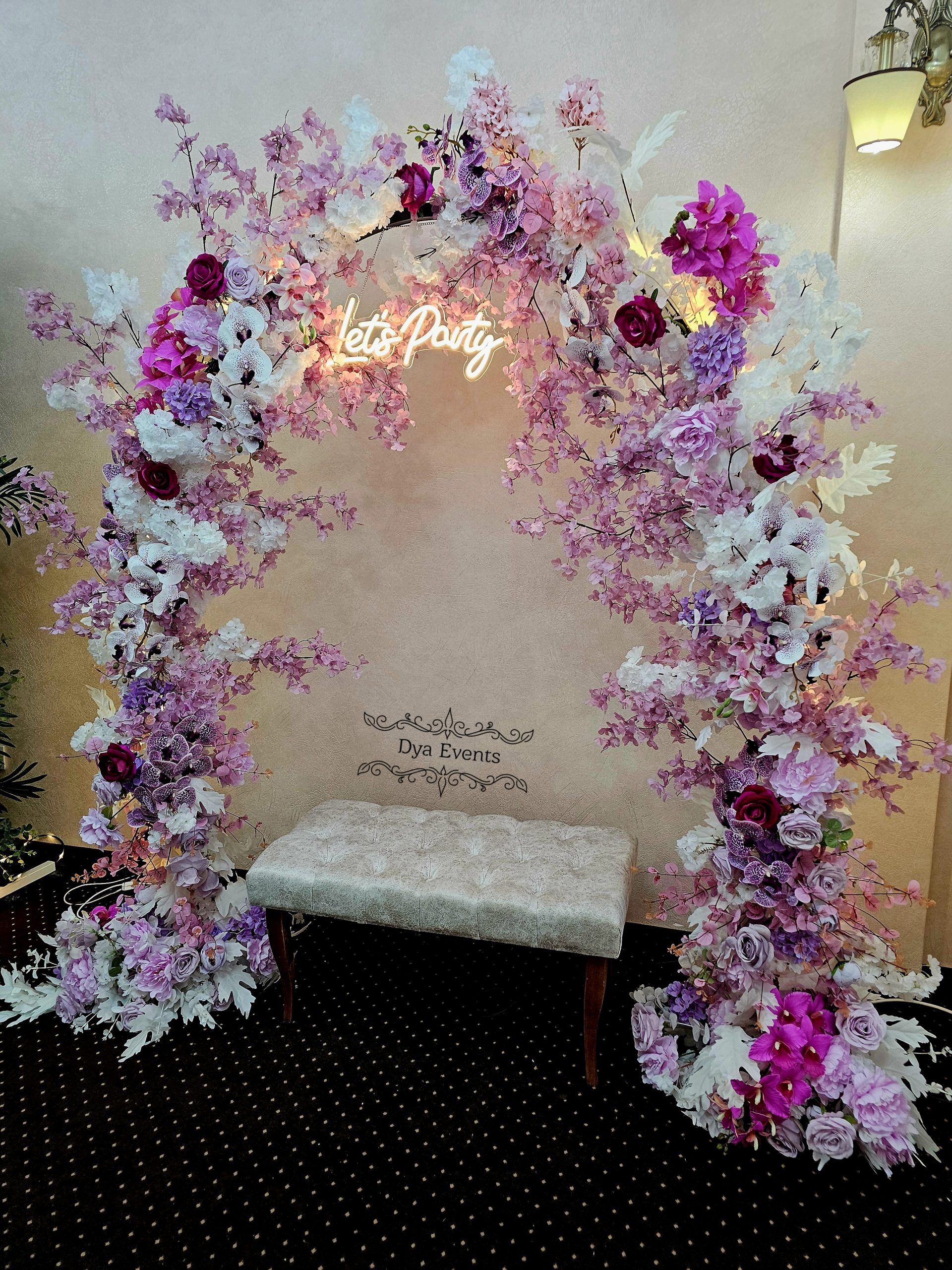 Arcada metalica cu flori artificiale si ghirlanda luminoasa (de inchiriat)