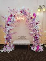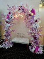 Arcada decorata cu flori artificiale, ideala pentru decorul casei din ziua marelui eveniment.