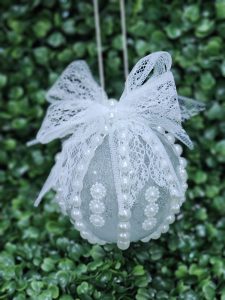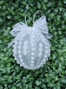 Globe (christmas tree decoration) decorated with rhinestones and pearls, ideal for decorating the Christmas tree or as a unique gift for a loved one.