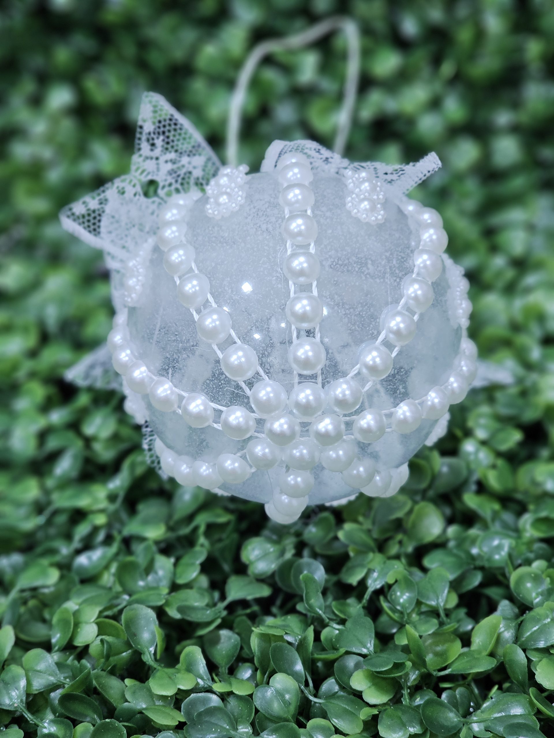 Glob decorat cu strasuri si perle, ideal pentru decorarea bradului de Craciun sau pentru un cadou unic pentru cineva drag.