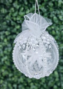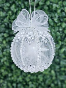 Glob de Craciun, decorat cu strasuri si perle si diverse ornamente de Craciun.