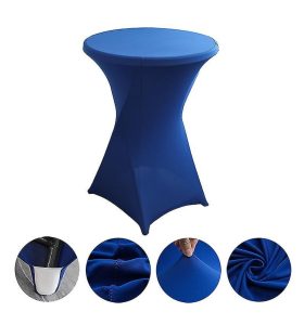 Masa de cocktail pliabila cu husa albastru royal, ideala pentru diverse evenimente.