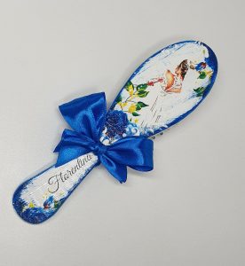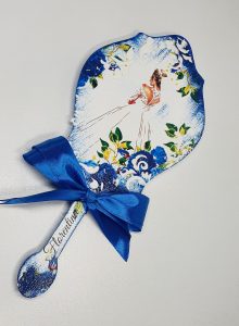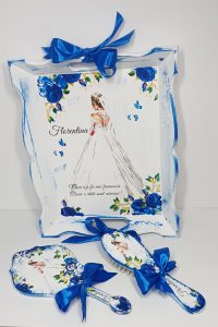 Set pentru gătitul miresei compus din tava, oglinda și pieptan, personalizate și pictate manual.